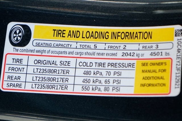 - Tire, spare LT265/70R18E all-season, blackwall (Included and only available with (QWF) LT265/70R18E all-season tires or (QGM) LT265/70R18E all-terrain tires. Available to order when (ZW9) pick-up box delete is ordered.)