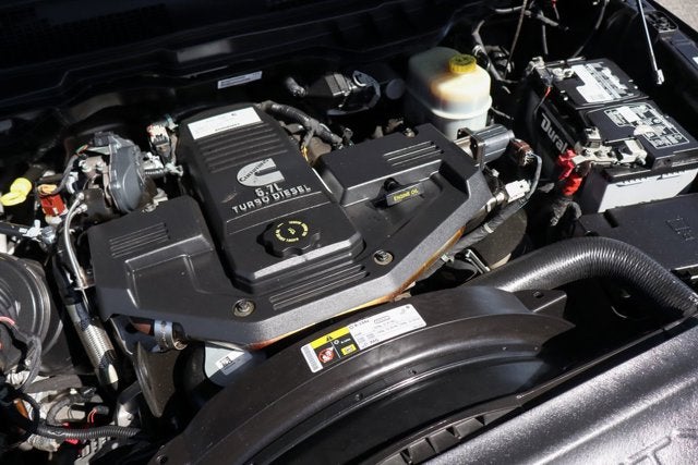 The impressive Cummins engine, paired with a 6-speed automatic transmission and 4-wheel drive, provides unparalleled capability and control, whether you're hauling heavy loads or navigating rough terrain. The Laramie trim level elevates the experience with premium features like leather-trimmed sport bucket seats, a heated steering wheel, and a state-of-the-art Uconnect 4C navigation system with an 8.4-inch touchscreen display.