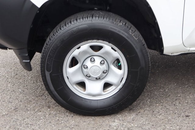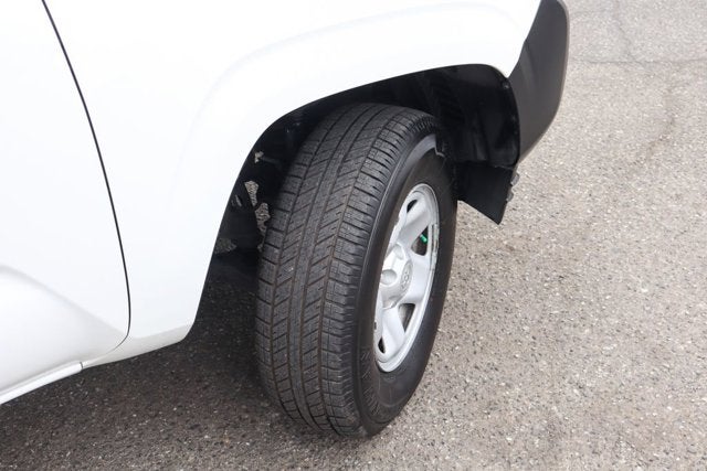 Beyond the functional features, this Tacoma also boasts a sleek, modern design. The white exterior color gives it a clean, fresh look, while the black accents and 16-inch steel wheels add a touch of rugged style. The interior is well-appointed, with fabric seat trim and a user-friendly infotainment system that includes AM/FM radio, a CD player, and steering wheel-mounted audio controls.