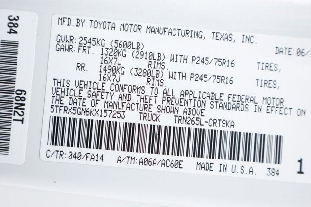 - Vehicle Name: Toyota Tacoma 2WD
