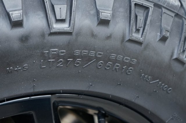 - Tires, LT275/65R18C MT blackwall Goodyear Wrangler DuraTrac