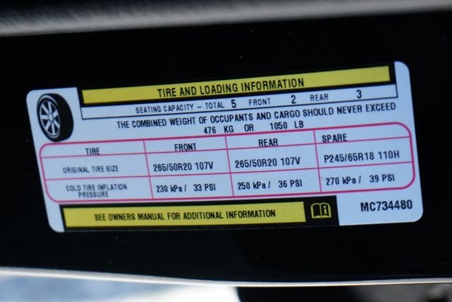 - Rear Tire Size: P265/50TR20