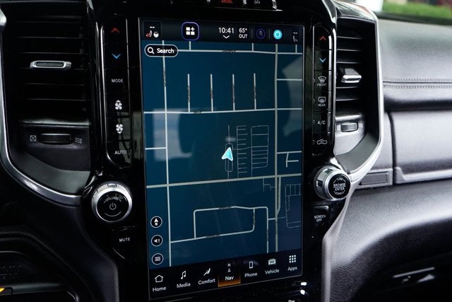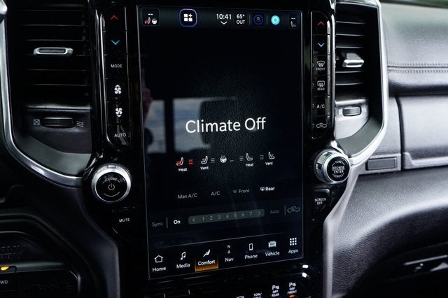 This Laramie trim level offers an exceptional level of comfort and convenience, with features like a premium 17-speaker harman kardon sound system, a massive 12-inch touchscreen display, and a digital rearview mirror with tow mode. The leather-trimmed, heated and ventilated seats provide ultimate relaxation, while the power-adjustable pedals and memory settings ensure a personalized driving experience.