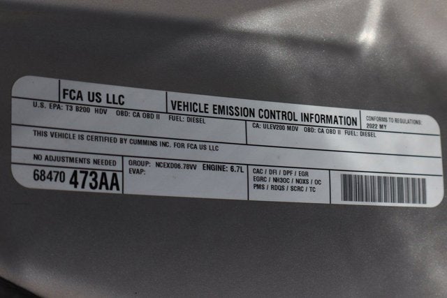 **PREFERRED EQUIPMENT PKG 2HA TRADESMAN**, **CHROME APPEARANCE PACKAGE**, **TRADESMAN LVL 2 EQUIPMENT GROUP**, CARFAX One-Owner. Clean CARFAX. **CLEAN ONE OWNER CARFAX**, **4X4**, **CREW CAB**, **STANDARD BED**, **POWER WINDOWS**, **POWER DOOR LOCKS**, **TOW PACKAGE**, **EXHAUST BRAKE**, 2 Way Rear Headrest Seat, 4 Way Front Headrests, 40/20/40 Split Bench Seat, Bright Front Bumper, Bright Rear Bumper, Carpet Floor Covering, Center Hub, Chrome Appearance Group, Chrome Grille Surround, Cloth 40/20/40 Bench Seat, Front Armrest w/Cupholders, Manual Adjust 4-Way Driver Seat, Manual Adjust 4-Way Front Passenger Seat, Matte Black Mesh Grille w/Chrome, Quick Order Package 2HA Tradesman, Rear Folding Seat, Rear Power Sliding Window, Rear Window Defroster, SiriusXM Satellite Radio, Storage Tray, Tradesman Level 2 Equipment Group, Wheels: 18 x 8.0 Steel Chrome Clad. Cummins 6.7L I6 Turbodiesel 6-Speed Automatic