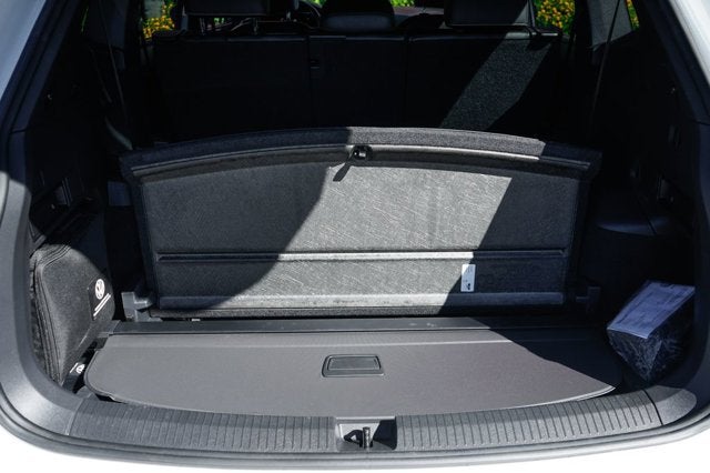 The interior of this Tiguan is truly impressive, featuring premium V-Tex leatherette seating surfaces, heated front seats, and a leather-wrapped steering wheel. The spacious cabin provides ample room for up to seven passengers, with a split-folding rear seat that offers versatile cargo space. The Composition Media infotainment system with a 6.5-inch touchscreen, SiriusXM radio, and a premium audio system ensures you'll enjoy every mile.