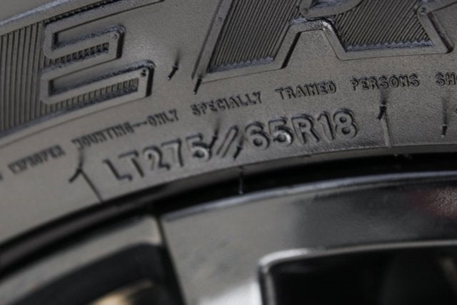 - Tires, LT275/65R18C blackwall Goodyear Wrangler DuraTrac MT
