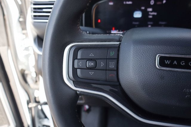 This Wagoneer's impressive list of features is further enhanced by the Premium Group I package, which includes a 3-panel sunroof, adjustable roof rail crossbars, a reversible cargo mat, and premium 20-inch alloy wheels. With its spacious and versatile interior, the Wagoneer can easily accommodate your family and all their gear, while the powerful V8 engine and 4WD system ensure you'll have the capability to tackle any adventure.