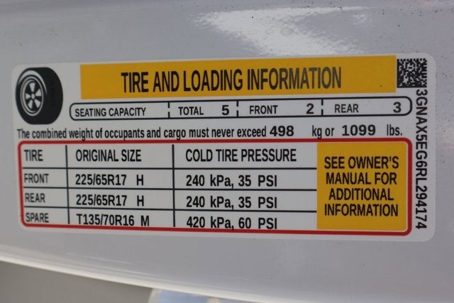 - Tires, P225/65R17 all-season blackwall (AWD only.)